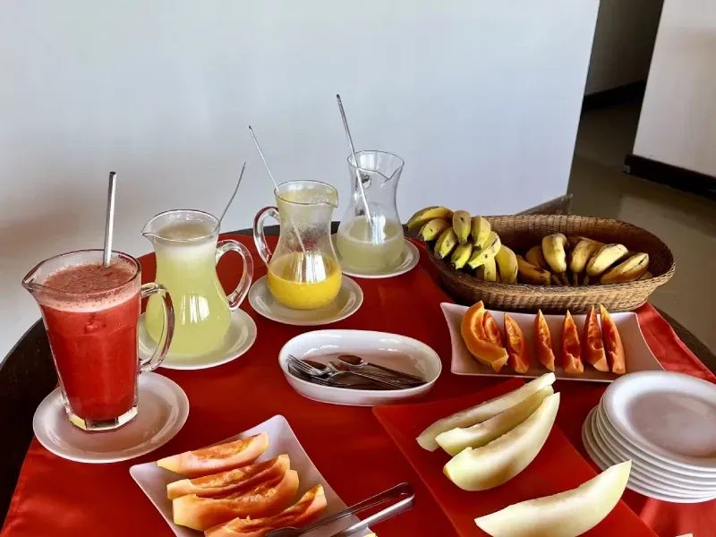 O café da manhã em estilo buffet é preparado com carinho para começar o dia da melhor forma.